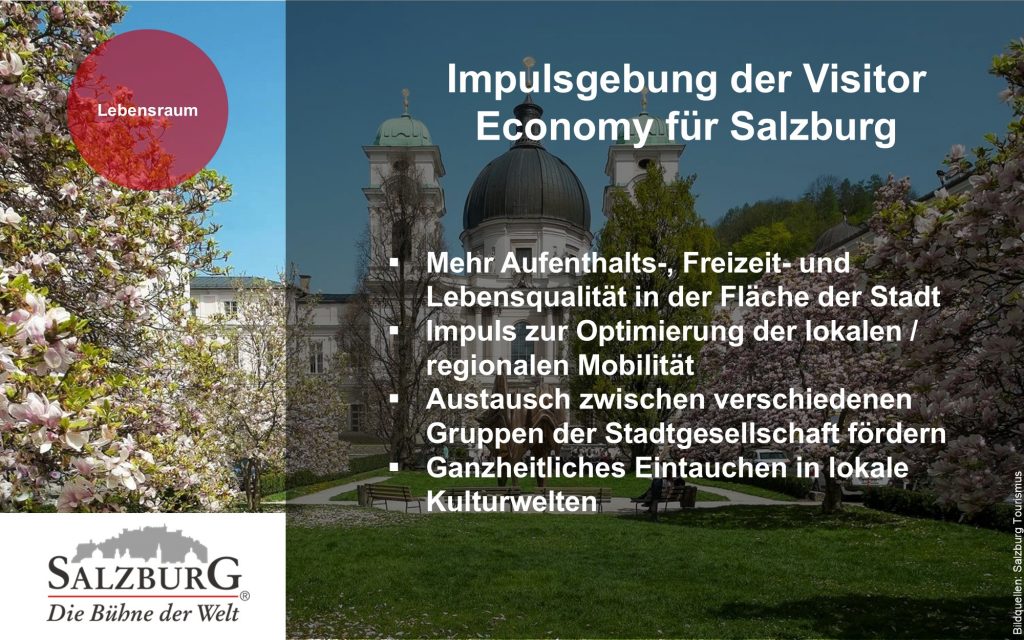 Die Vision Salzburg 2040 stellt die Lebensqualität der Einheimischen in den Mittelpunkt. Tourismus wird nicht isoliert betrachtet, sondern als Teil eines gesamtstädtischen Entwicklungsprozesses – im Sinne der Visitor Economy, die auf den Nutzen für die gesamte Stadtgesellschaft zielt. Es geht darum, dass die Menschen, die hier leben, direkt von der touristischen Entwicklung profitieren – durch mehr Aufenthaltsqualität, vielfältige Freizeit- und Kulturangebote und eine intakte Natur.